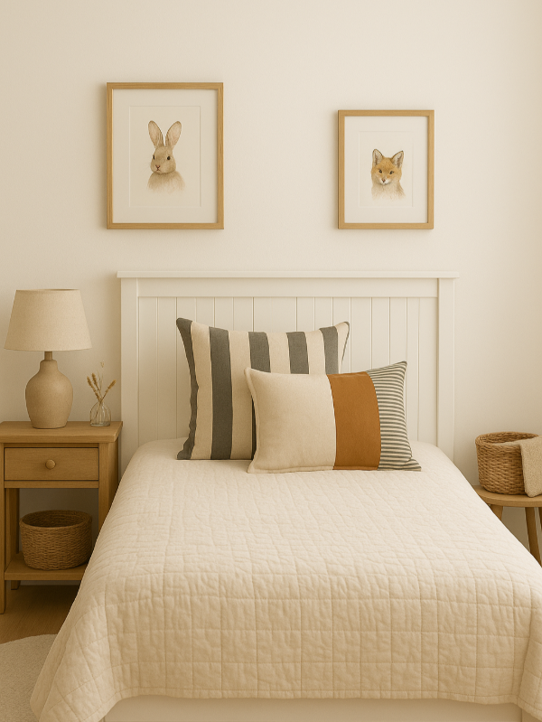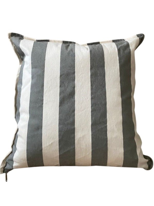 Almohadón de tusor en rayas gruesas con cierre para que se use de un lado o del otro.