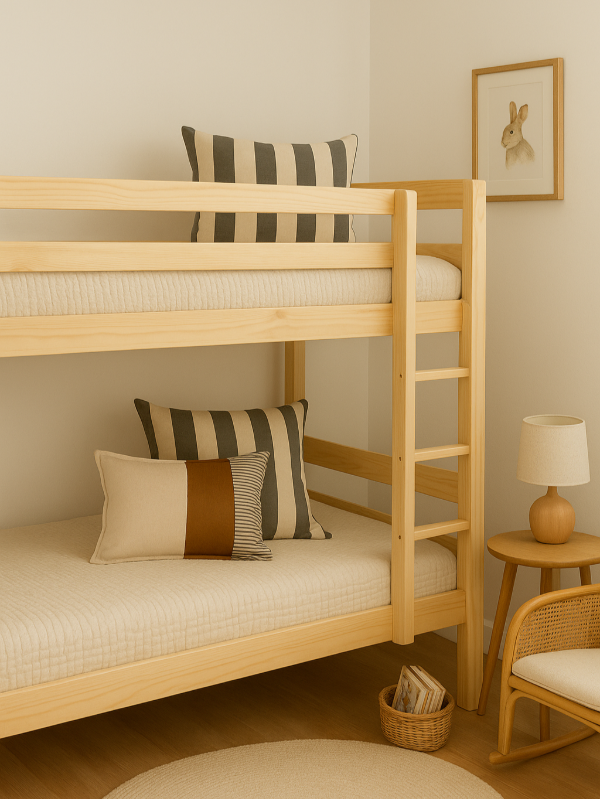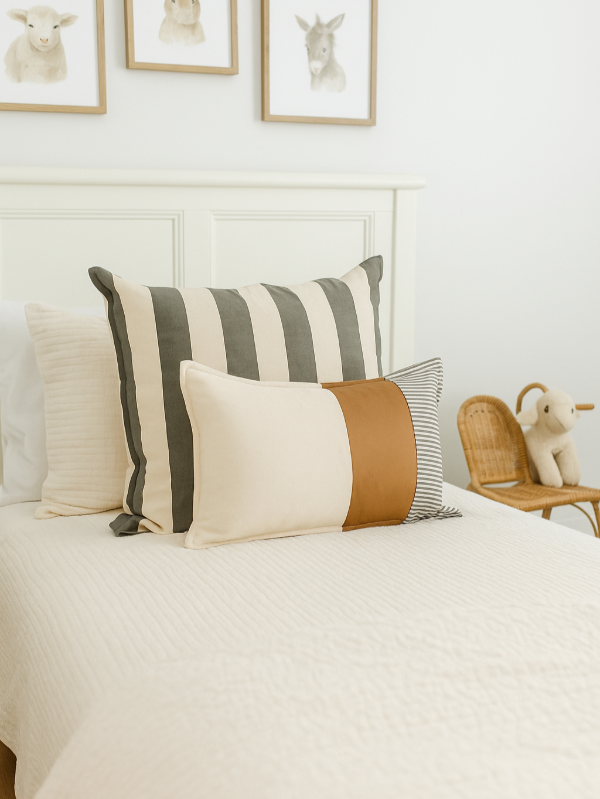 Funda de tusor en rayas gruesas con cierre para que se use de un lado o del otro.