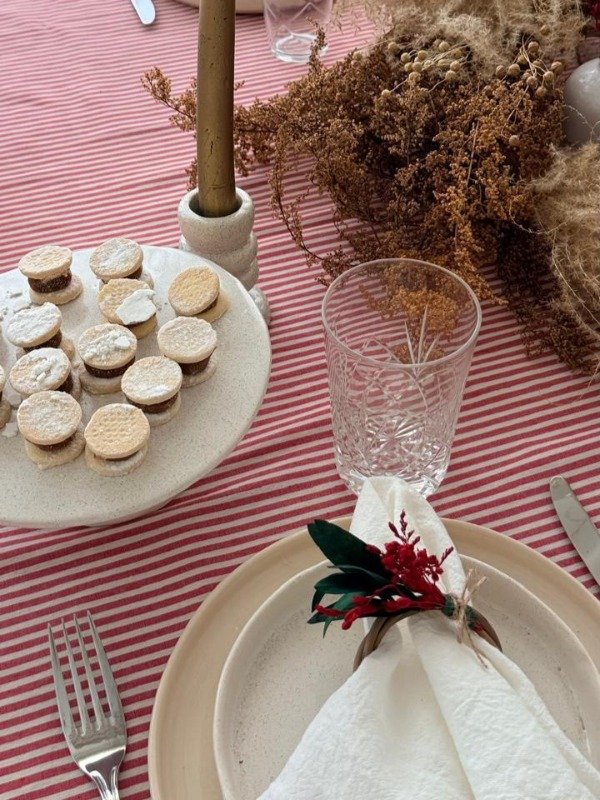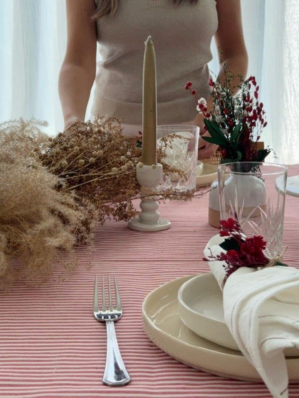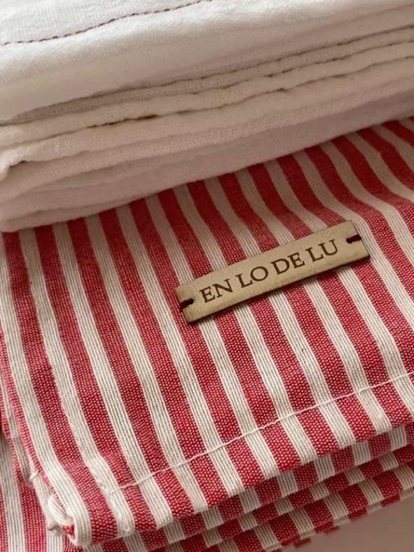 Mantel de tusor a rayas en rojo y blanco